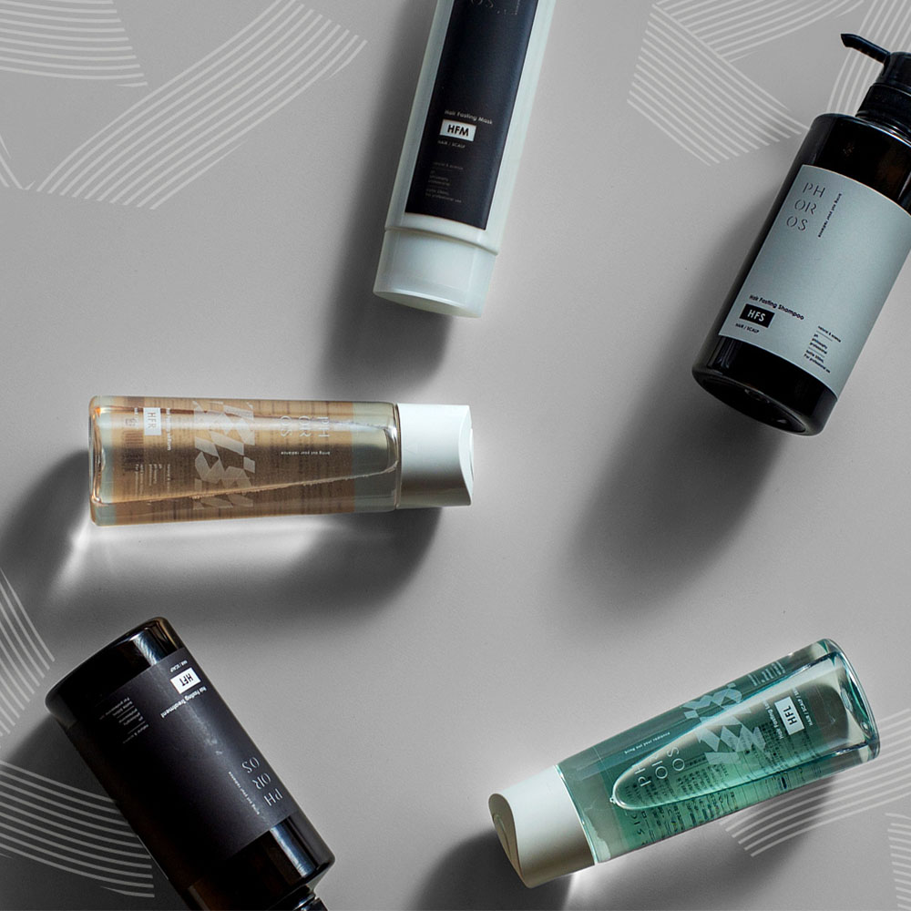 PHOROS(フォロス)ホームケアはインバス(シャンプー・トリートメント・ヘアマスク)とアウトバス(ローション・セラム)の5点セットのシリーズです。