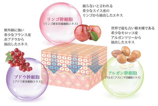 3つの希少な「植物幹細胞成分」が肌細胞の生まれ変わりを担う。