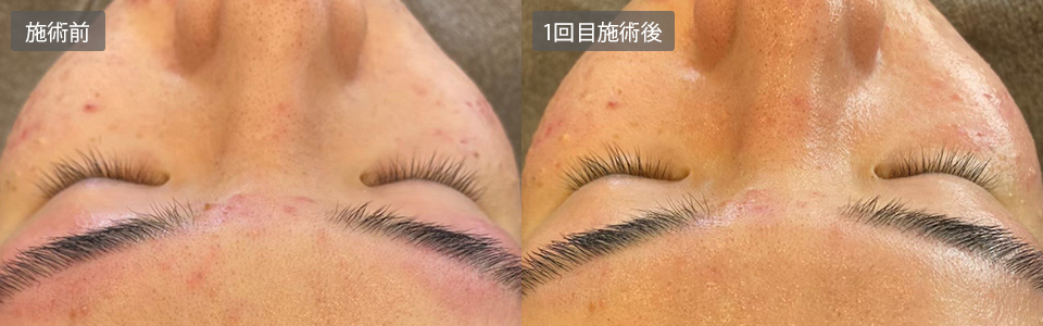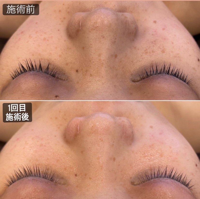 施術後は肌のトーンアップ、毛穴レス、赤みも消え、シミも薄くなり、お肌はツヤツヤに!